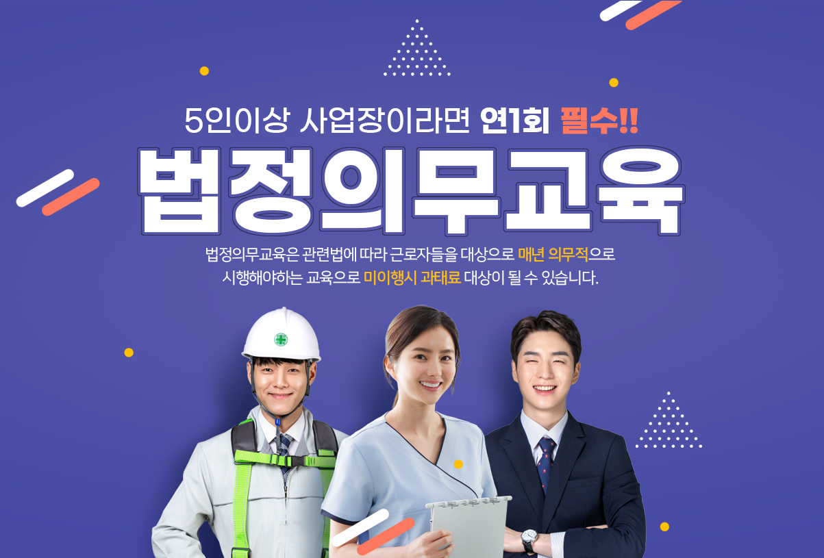 법정의무교육은 고용노동부에 등록된 교육기관에 위탁하여 받으셔야 합니다.